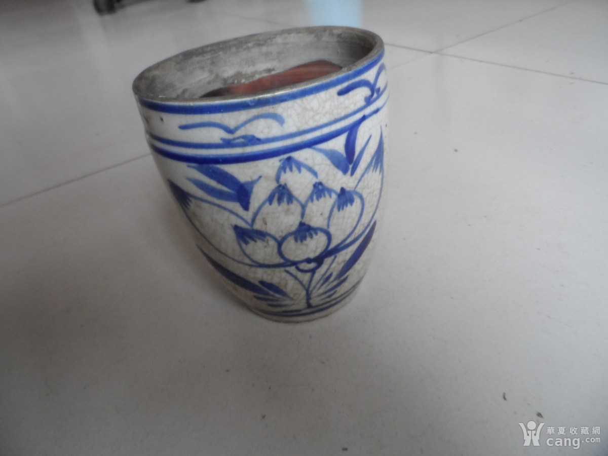 青花卷缸一件