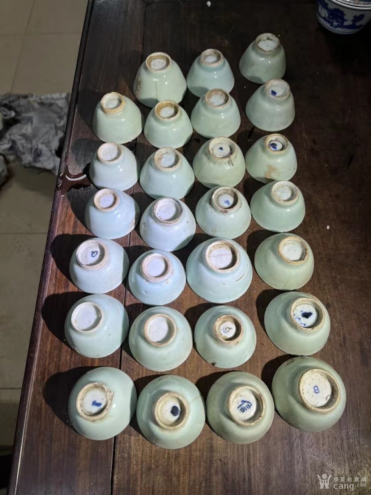 清代中期豆青釉小茶盏都有小线小磕碰,尺寸大约都在5.5-6.