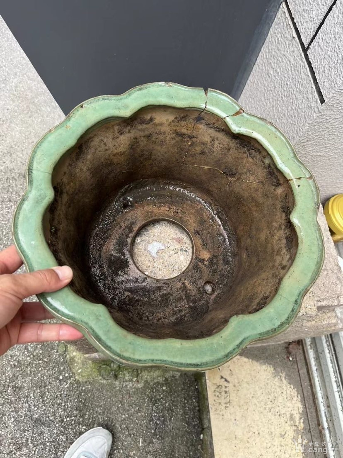 晚清民国时期紫砂花盆绿釉兰花盆品相如图可惜了