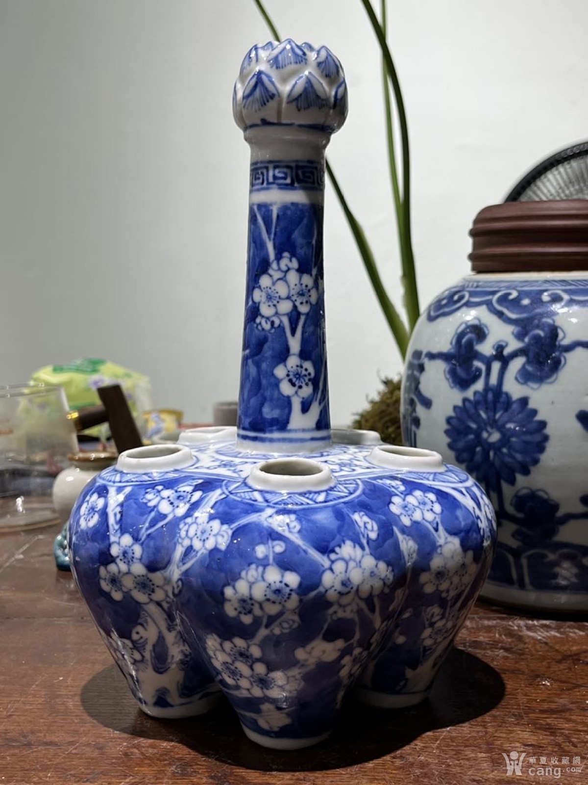清代光绪时期青花留白冰梅五管瓶/五孔瓶