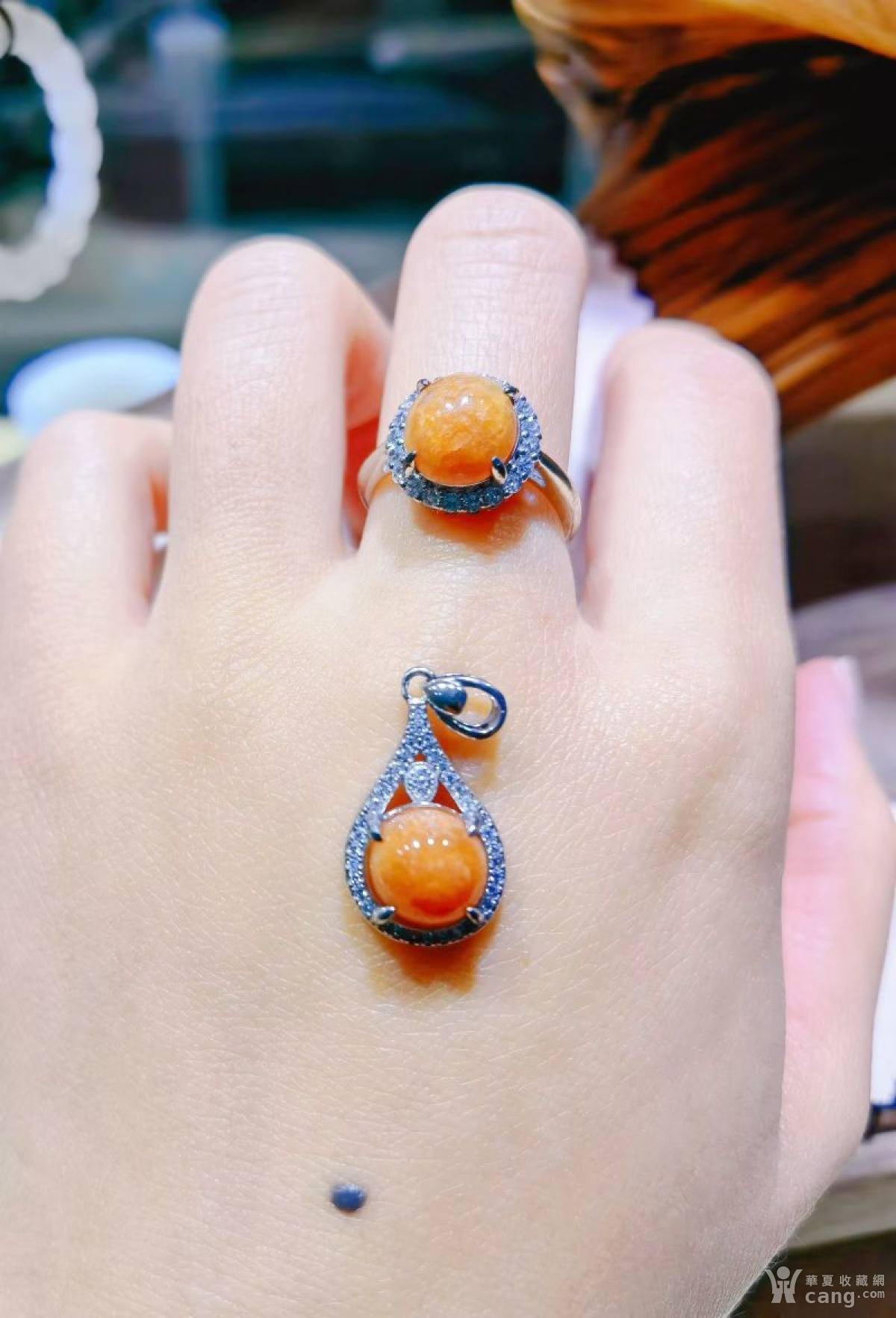 红翡戒指吊坠套装