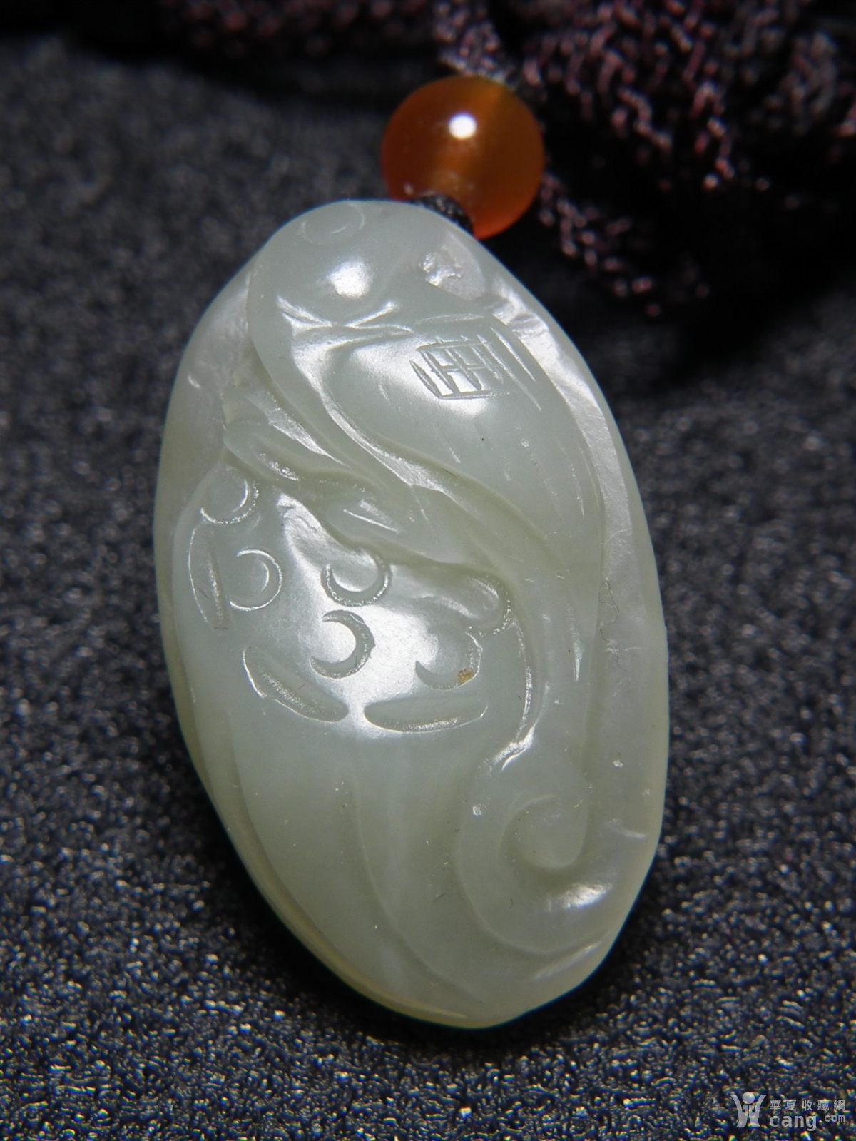 U23 和田青白玉手工雕老雕法随型浮雕灵芝莲蓬头凤鸟坠