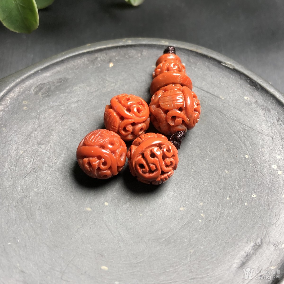 F506创汇期精雕团寿龙纹南红玛瑙三通佛头一套