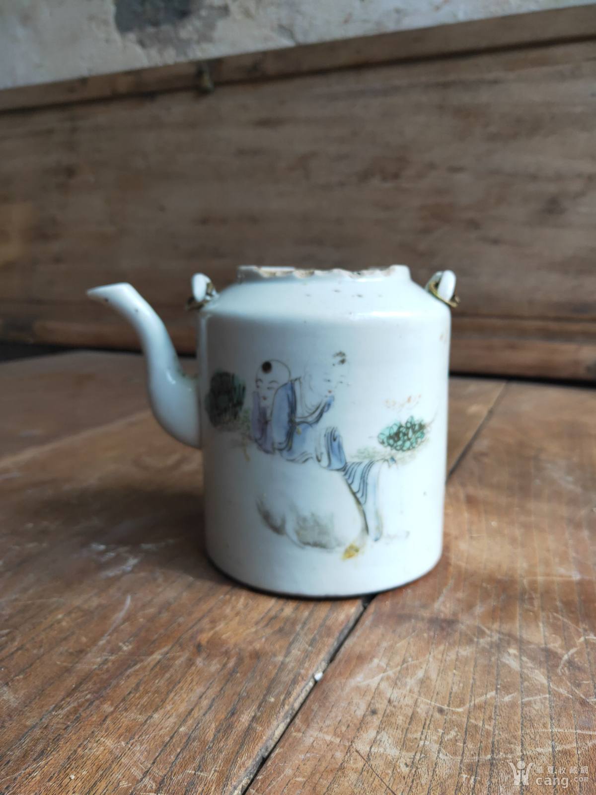 浅降彩婴戏茶壶