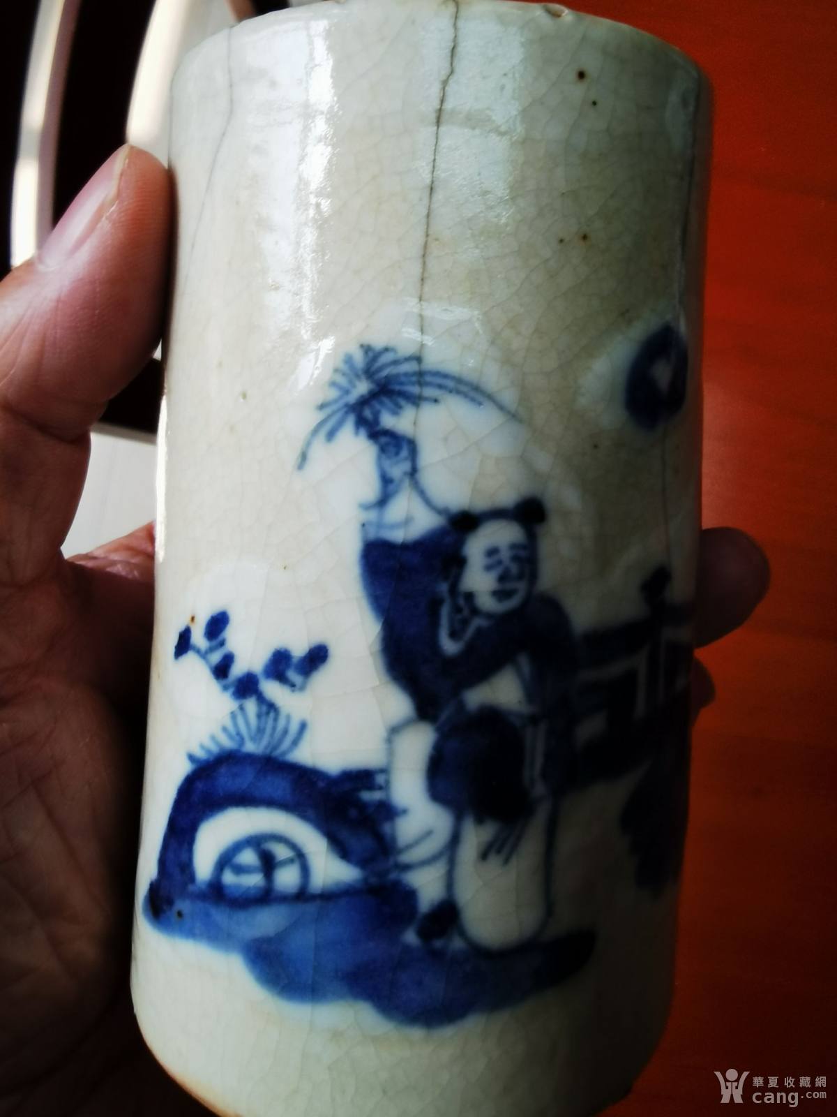 晚清青花人物笔筒