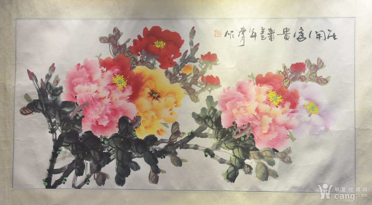 岭南名家 陈文 2001年国画《富贵花开》