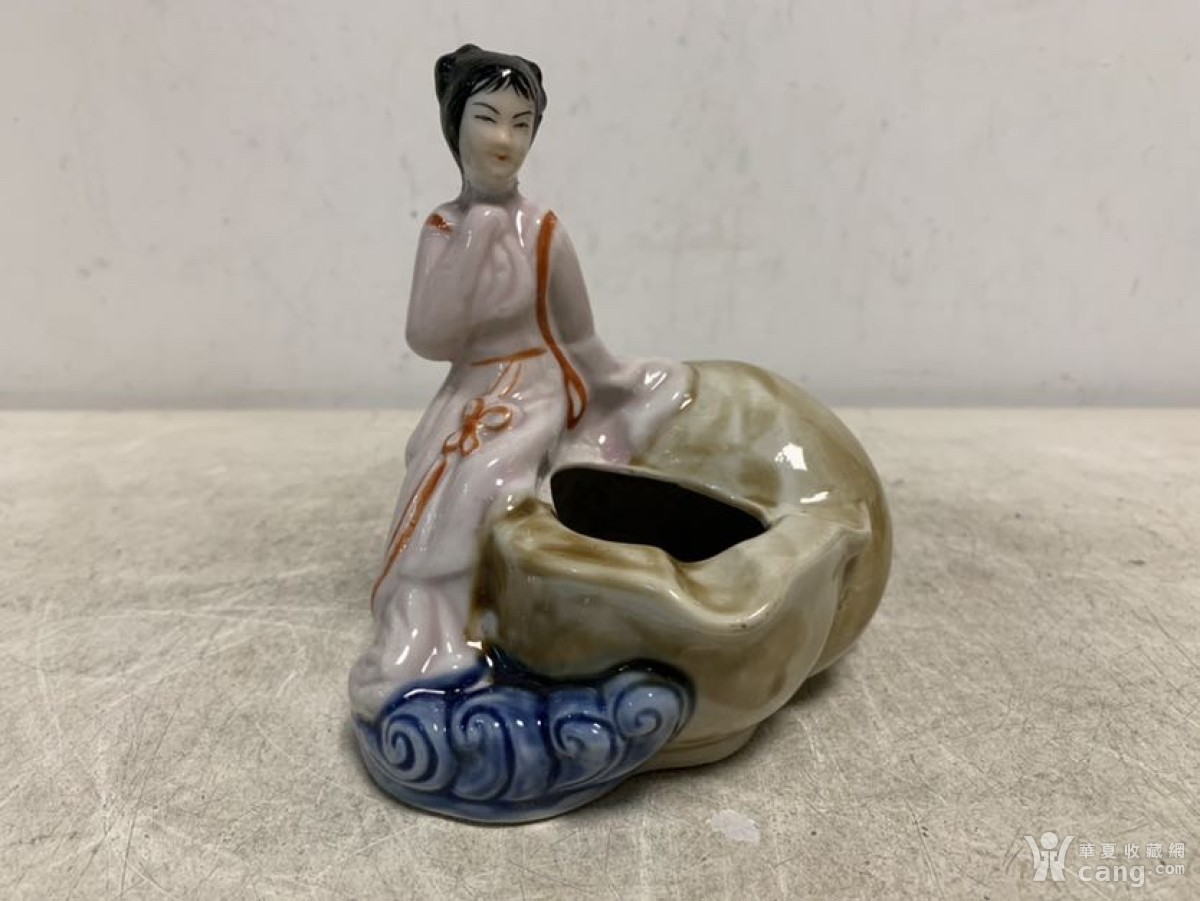 七十年代三色釉加彩田螺姑娘烟灰缸