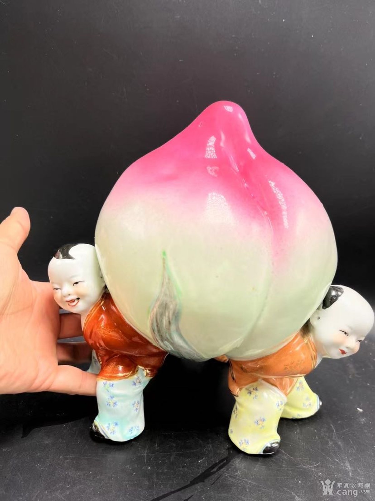 文革时期567瓷器粉彩童子捧寿大号摆件,全美品,难得一见景德