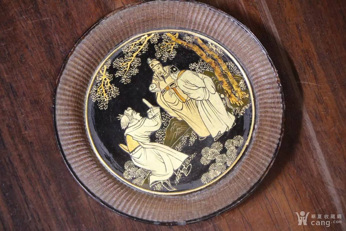 清早期黑大漆描金人物爬丝盘;整件器物富丽堂皇,贵气典雅,选材