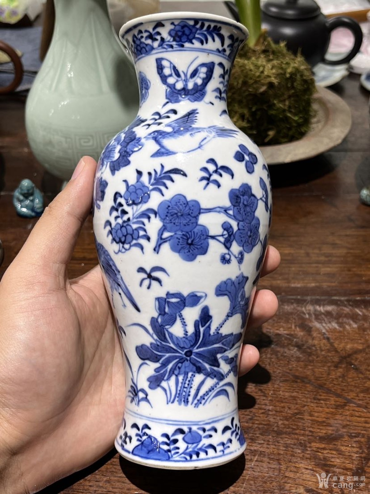 清代光绪时期「鸟语花香/花开富贵」青花观音瓶