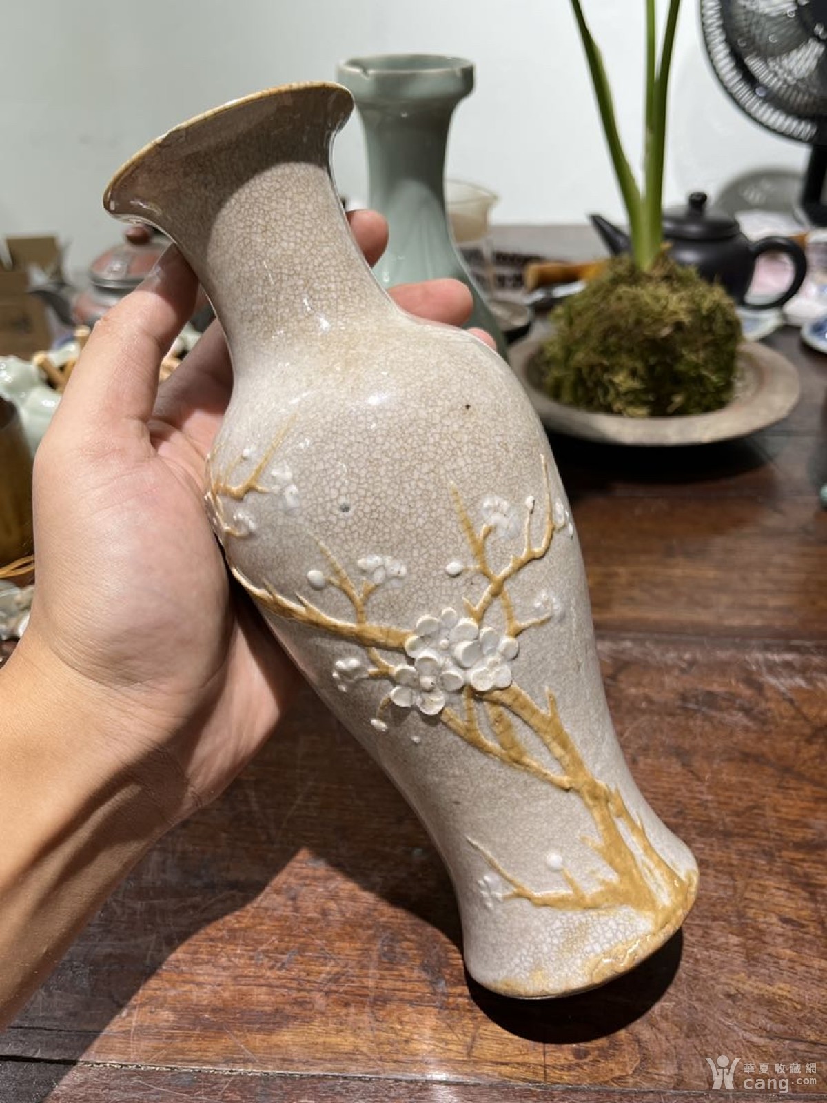 晚清民国哥釉堆瓷「梅花香自苦寒来」观音瓶