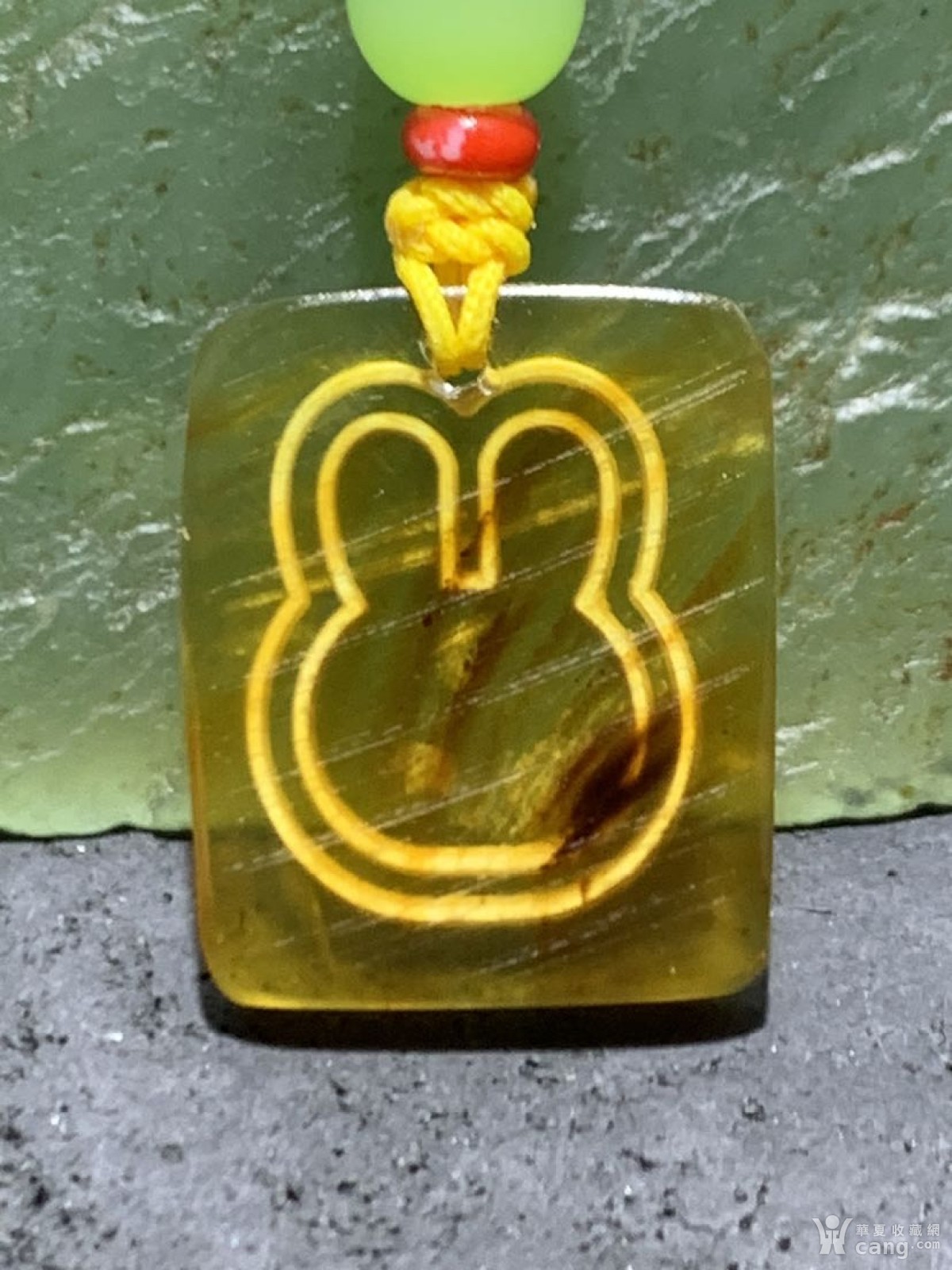 天然乌克兰蜜蜡原石雕刻兔子手机挂件(包挂)一个,