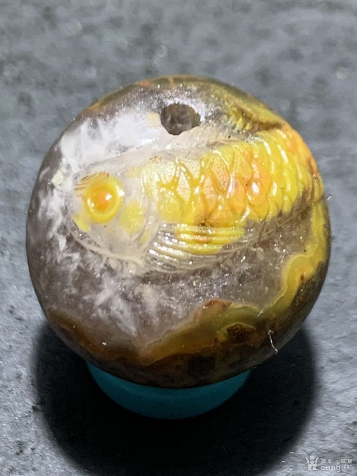 精美冰飘亚光战国红玛瑙巧雕龙鱼随形圆珠一个,寓意,富贵有鱼,
