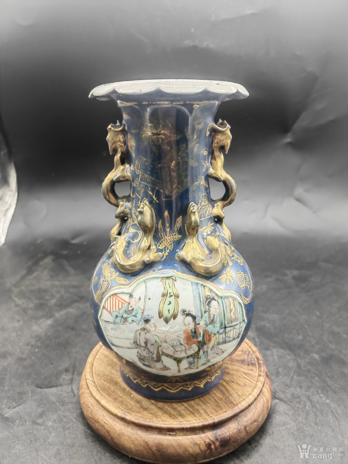 清代祭蓝釉粉彩人物翻口瓶