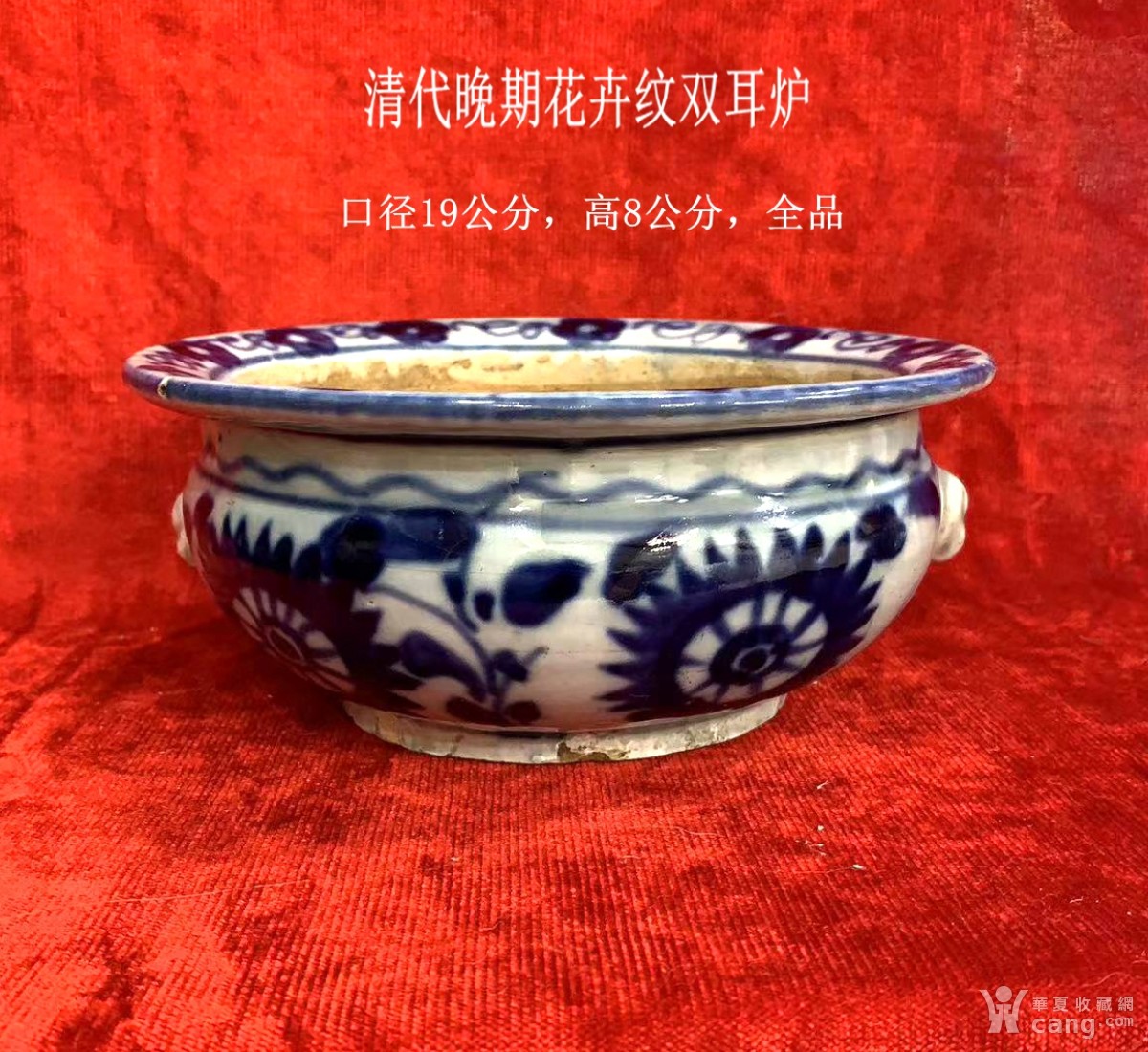 10267#老货包真包老晚清磁州窑青花圈足香炉青花盆青花笔洗