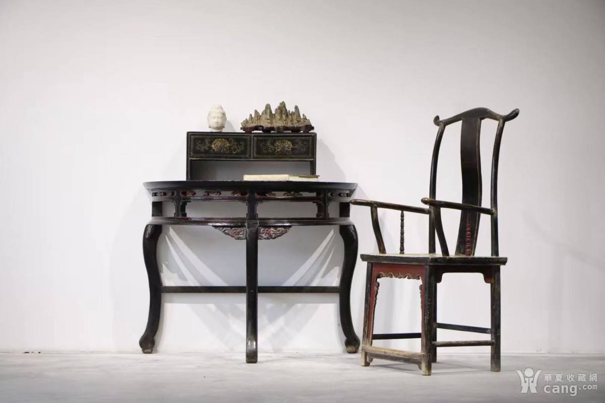 黒大漆月牙桌; 月牙桌可置厅堂玄关,可靠墙或临窗,上置花瓶、