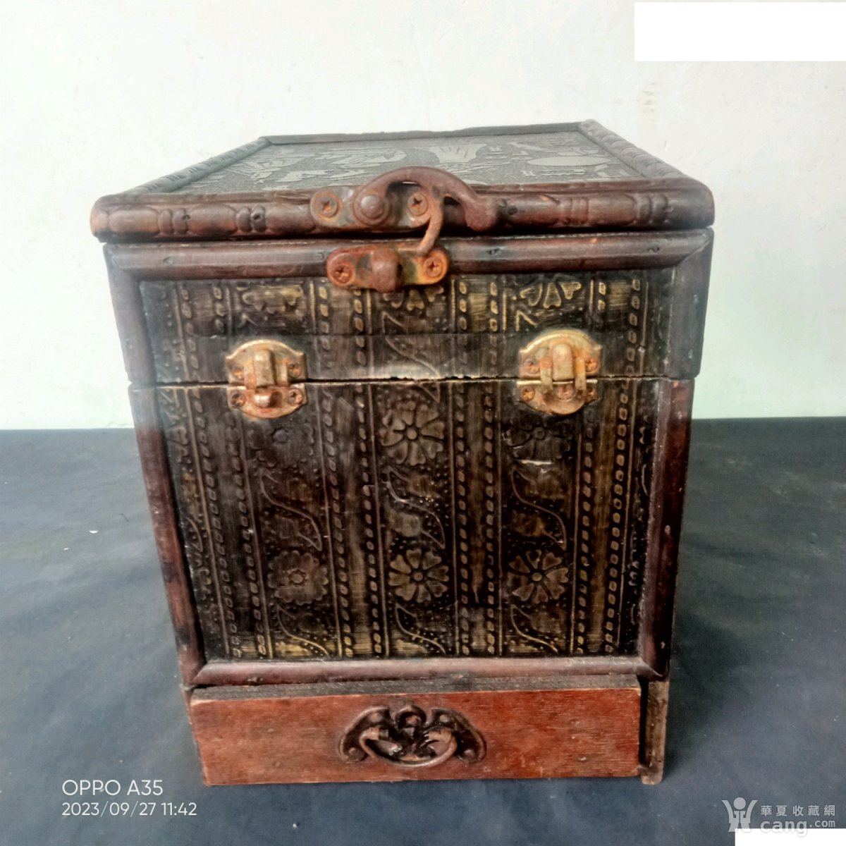 民国时期镶牛皮人物嫁妆盒一件