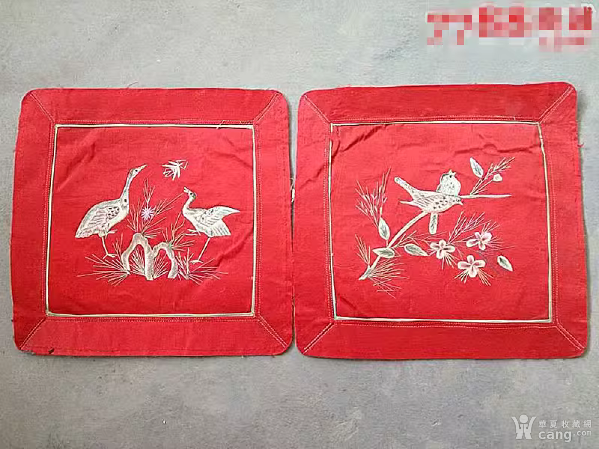 精美的清代花鸟刺绣枕顶一对
