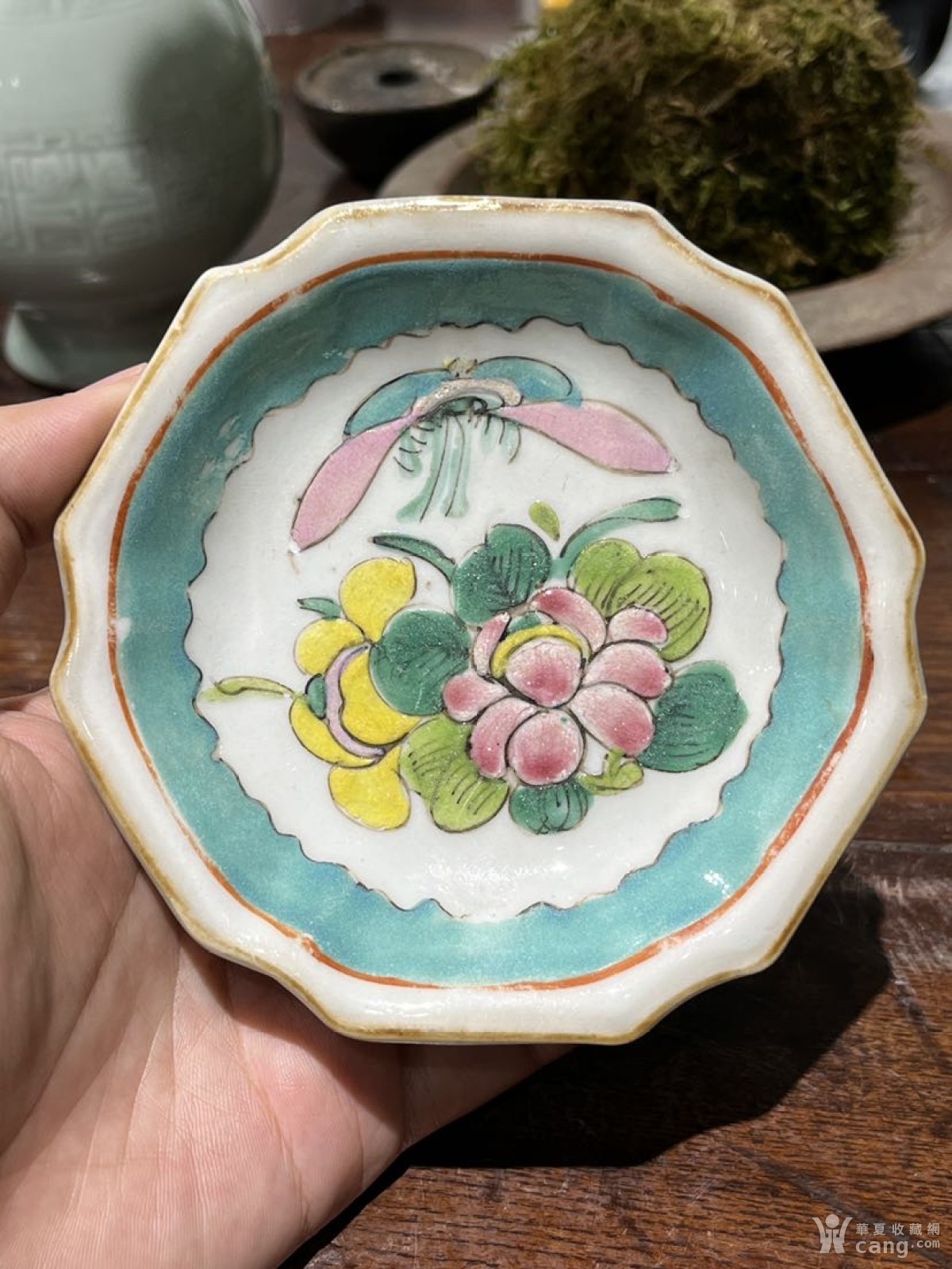 清代粉彩「花开富贵」六方倭角高足供盘/杯托/壶承/香炉