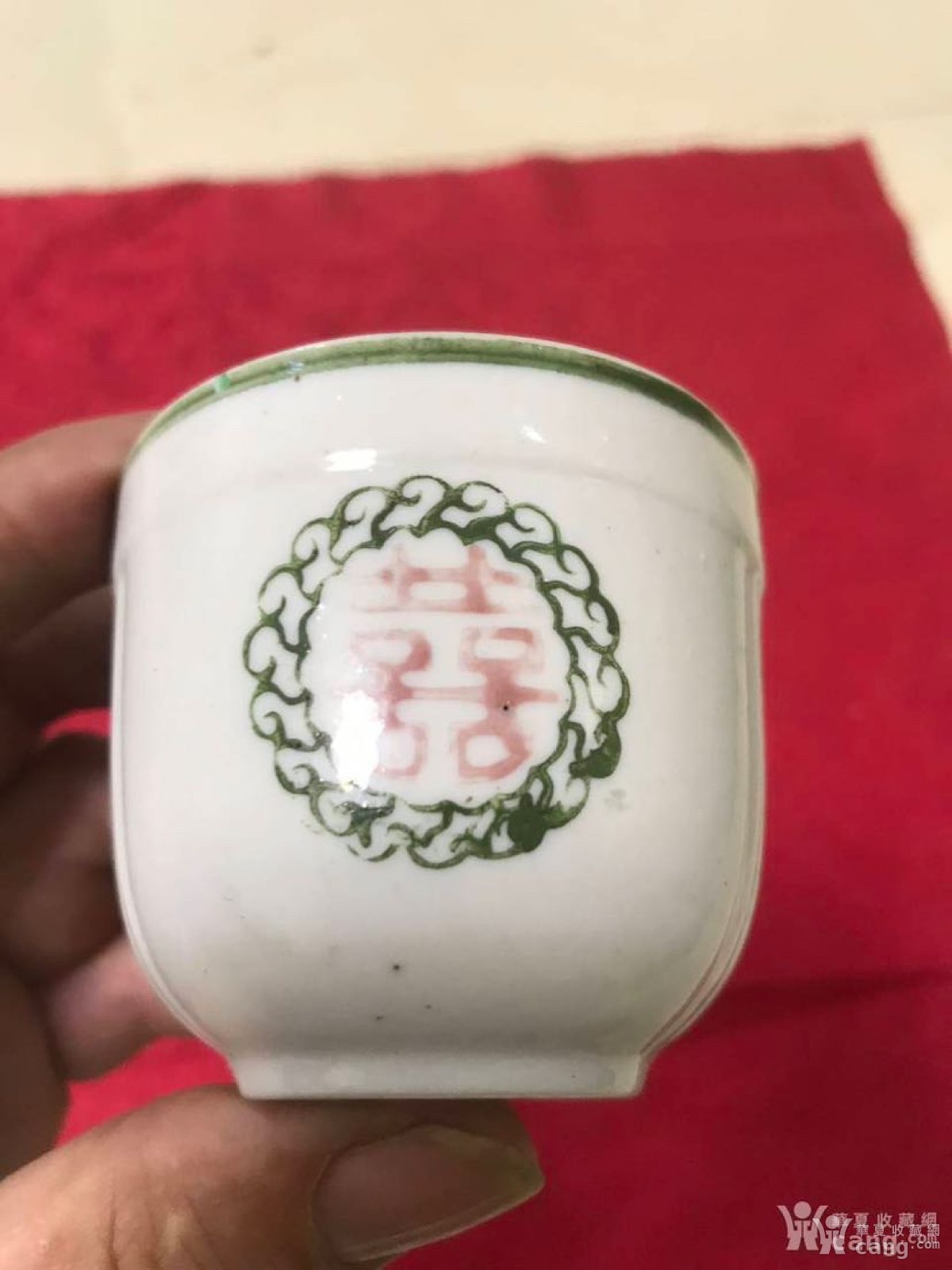 民国红绿彩喜字杯