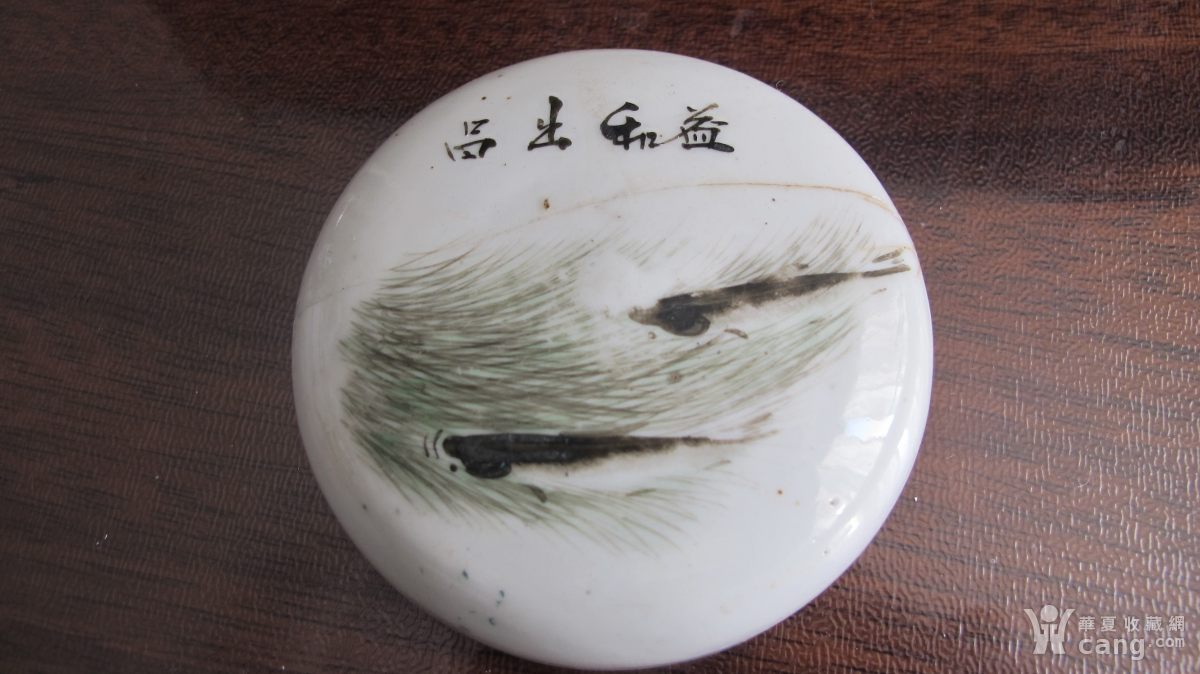 民国《益和出品》款水藻双鱼纹盖盒盖