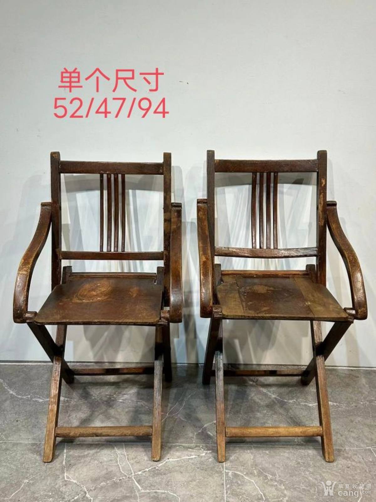 老榆木折叠行军椅一对,尺寸如图,完整牢固包老。