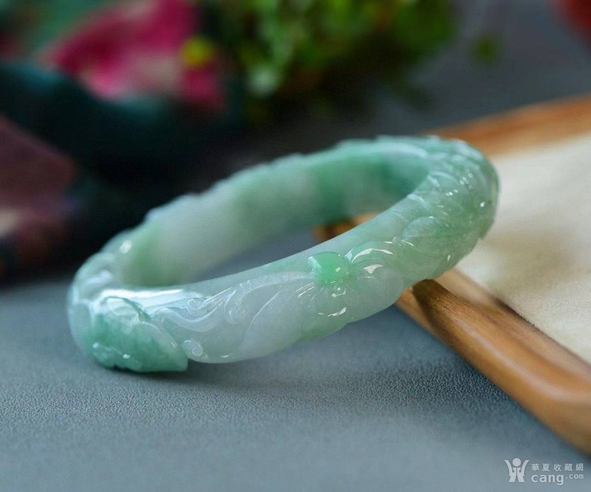 新品珠宝 极美果绿底A货翡翠雕刻【如意·花开富贵】平安镯