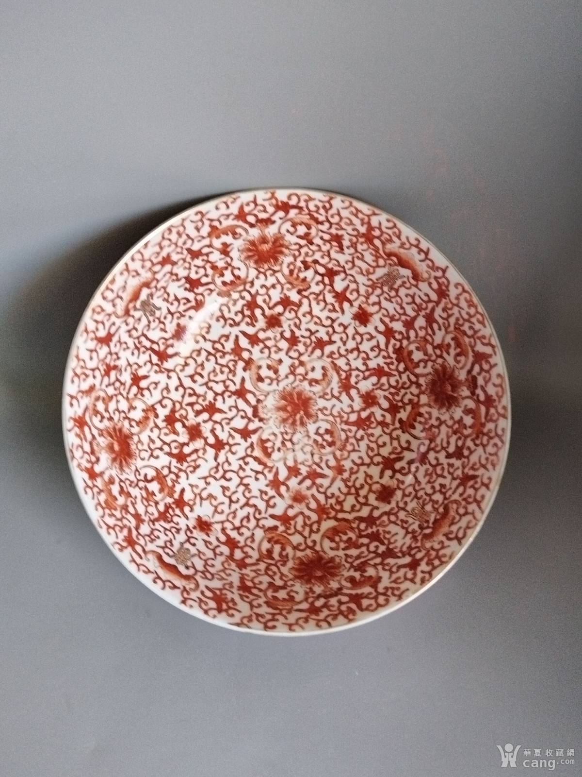 民国矾红彩缠枝莲花卉喜字大碗 全品