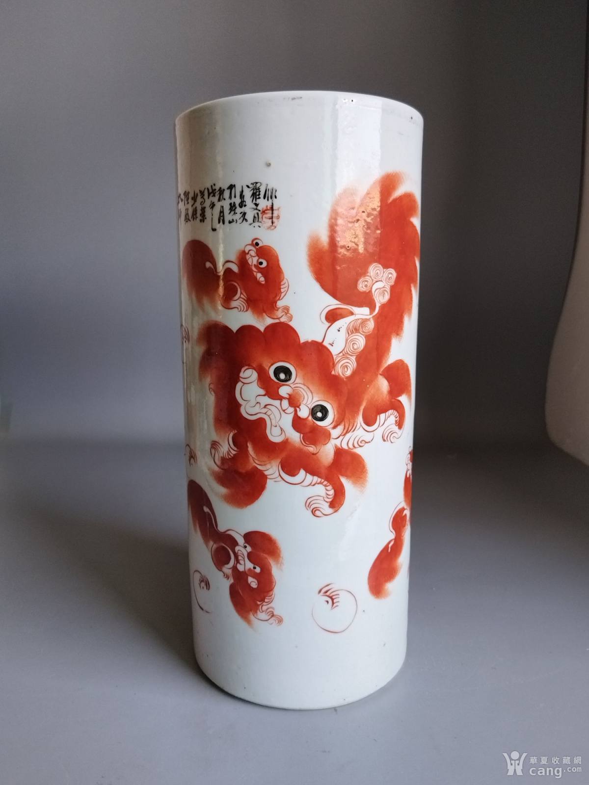 清末矾红彩太师少保狮子帽筒