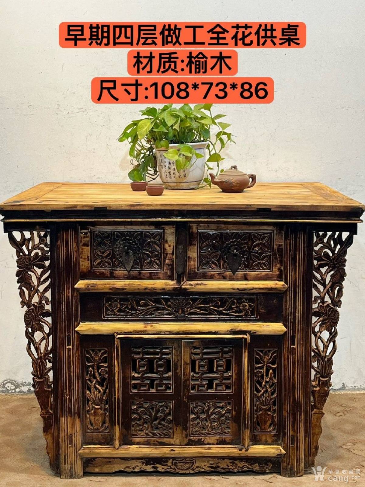 精品四层花榆木供桌、双开两拉,纯手工精心雕刻满工,雕刻精美,