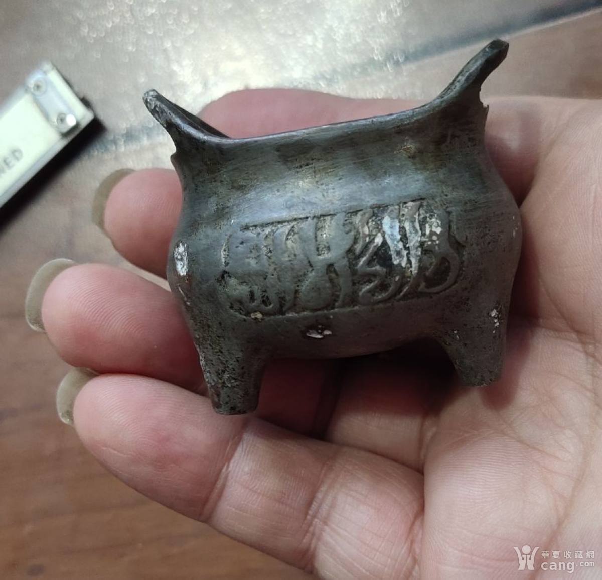 清代手工雕刻红铜鎏锡阿文宣字款小香炉一个,完整。