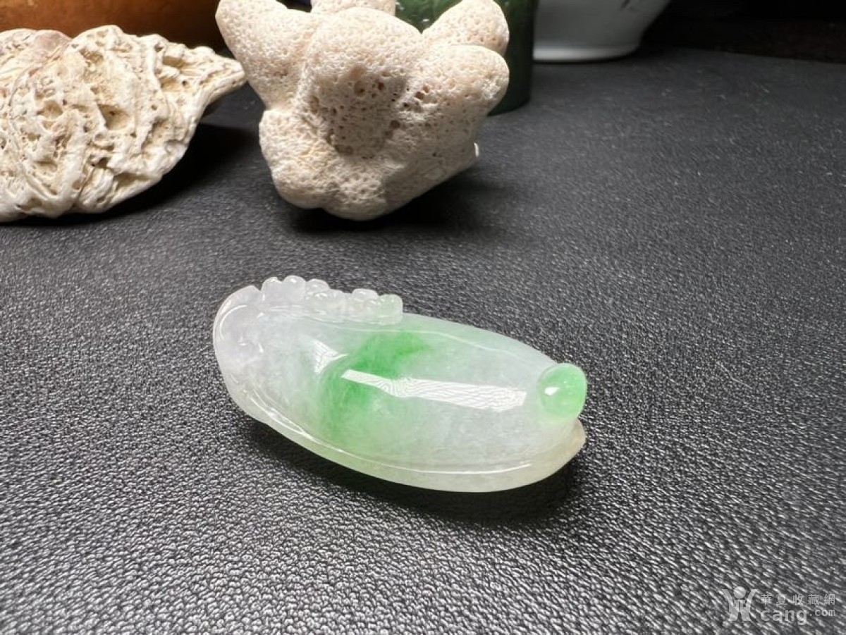 天然翡翠A货糯冰飘翠色福寿瓜果件
