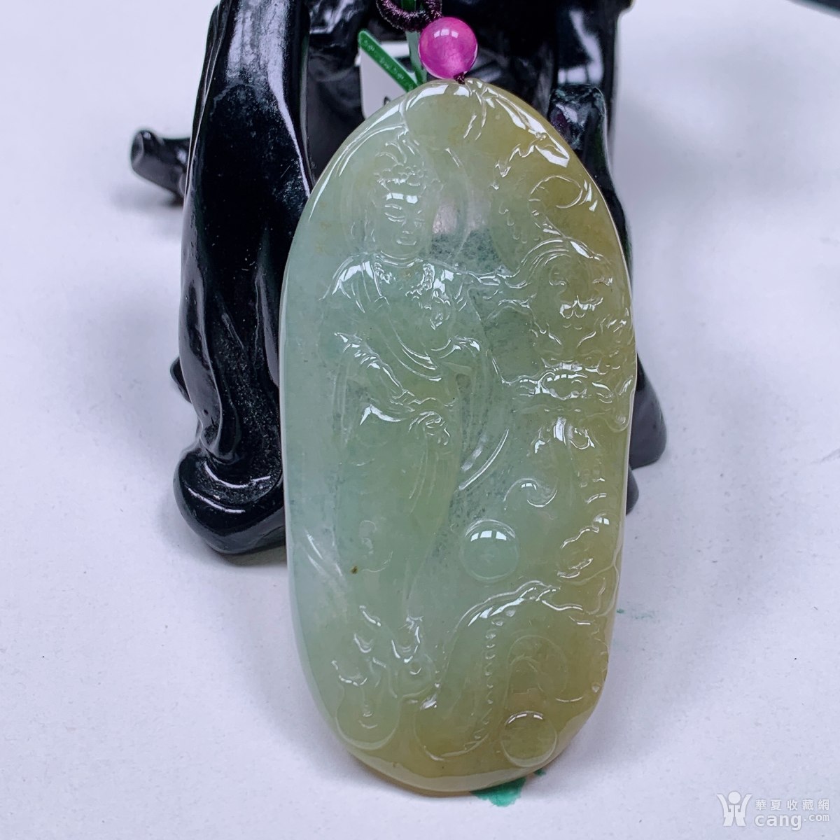自然光实拍!天然A货好种冰黄玉龙观音