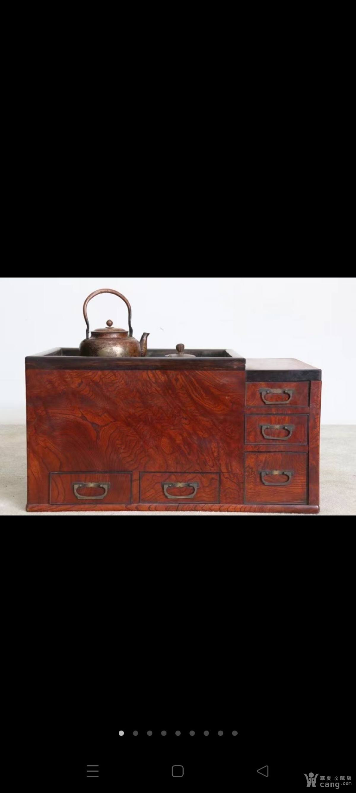 榉木影子木炭炉,整体榉木影子木独板,内部有铜质茶壶和温酒器,