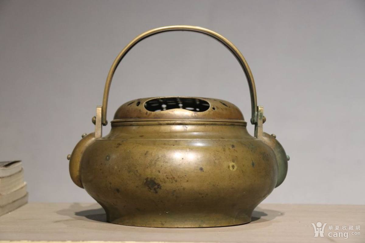 清早期~金钱纹铜手炉 此手炉圆润饱满,线条流畅,盖子镂空钱