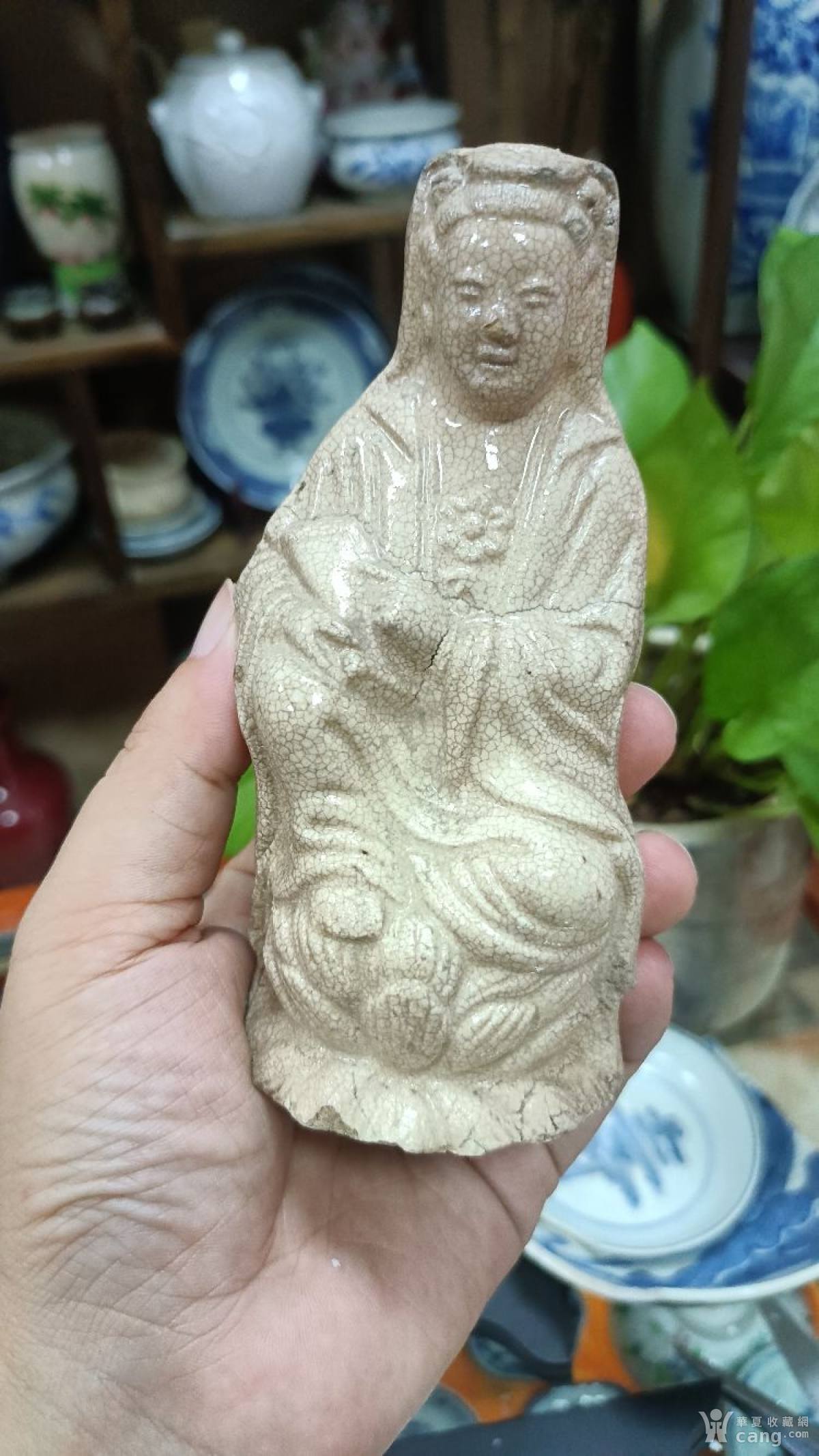 清代,漳窑米黄釉执书观音造像