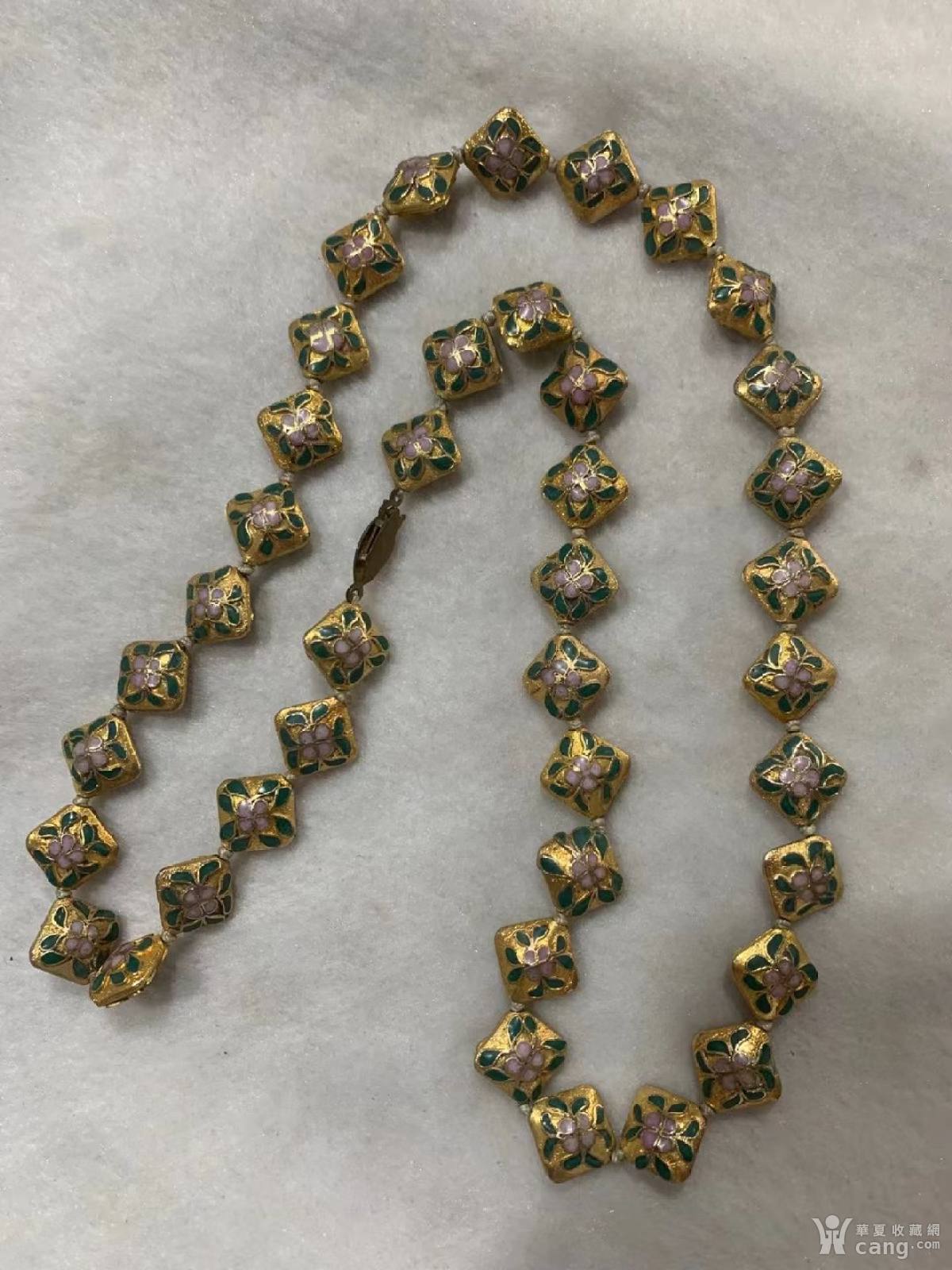 创汇期景泰蓝鎏金背云珠串一条,