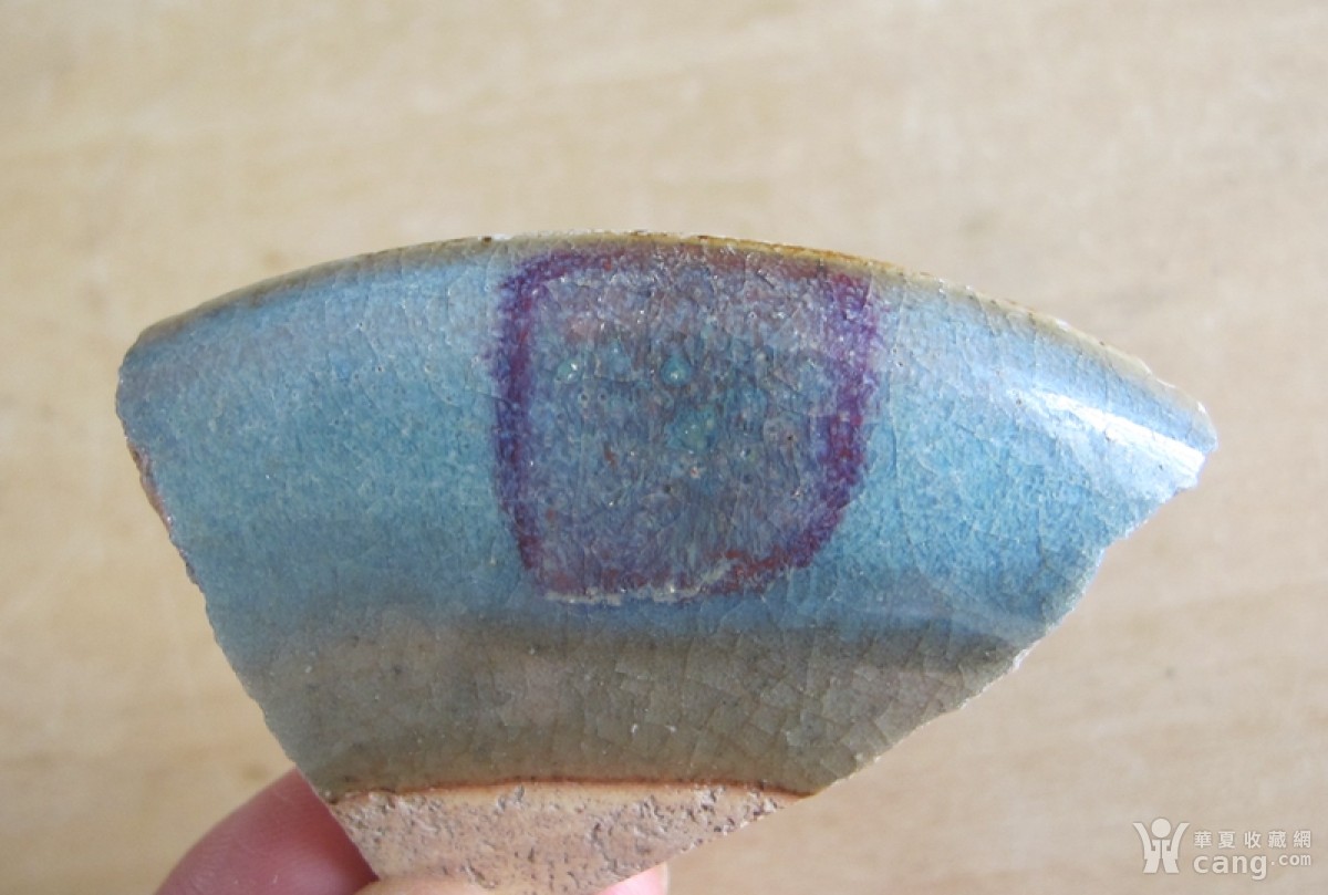 特价 宋金钧窑 过墙红典型 双面完整红斑 禹州钧 盘边美片