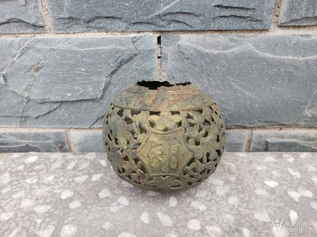 梅竹图吉祥如意铜香囊挂球,清代