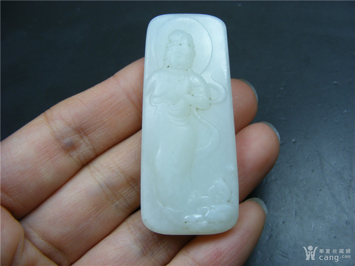 289 和田玉单面工浮雕莲花观音坠佩