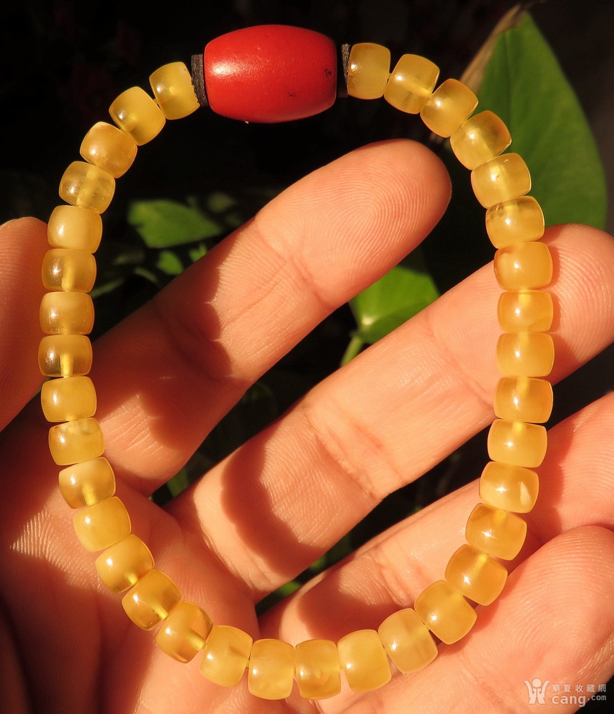天然“金绞蜜”蜜蜡配清代雪巴琉璃佛珠手钏