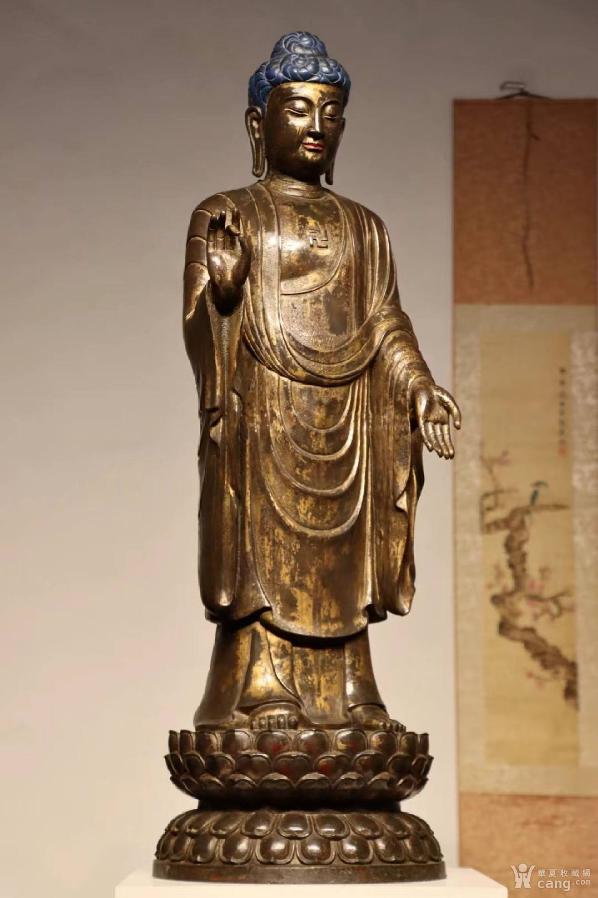 释迦摩尼造像 高度98直径32 铜鎏金 重51斤 开