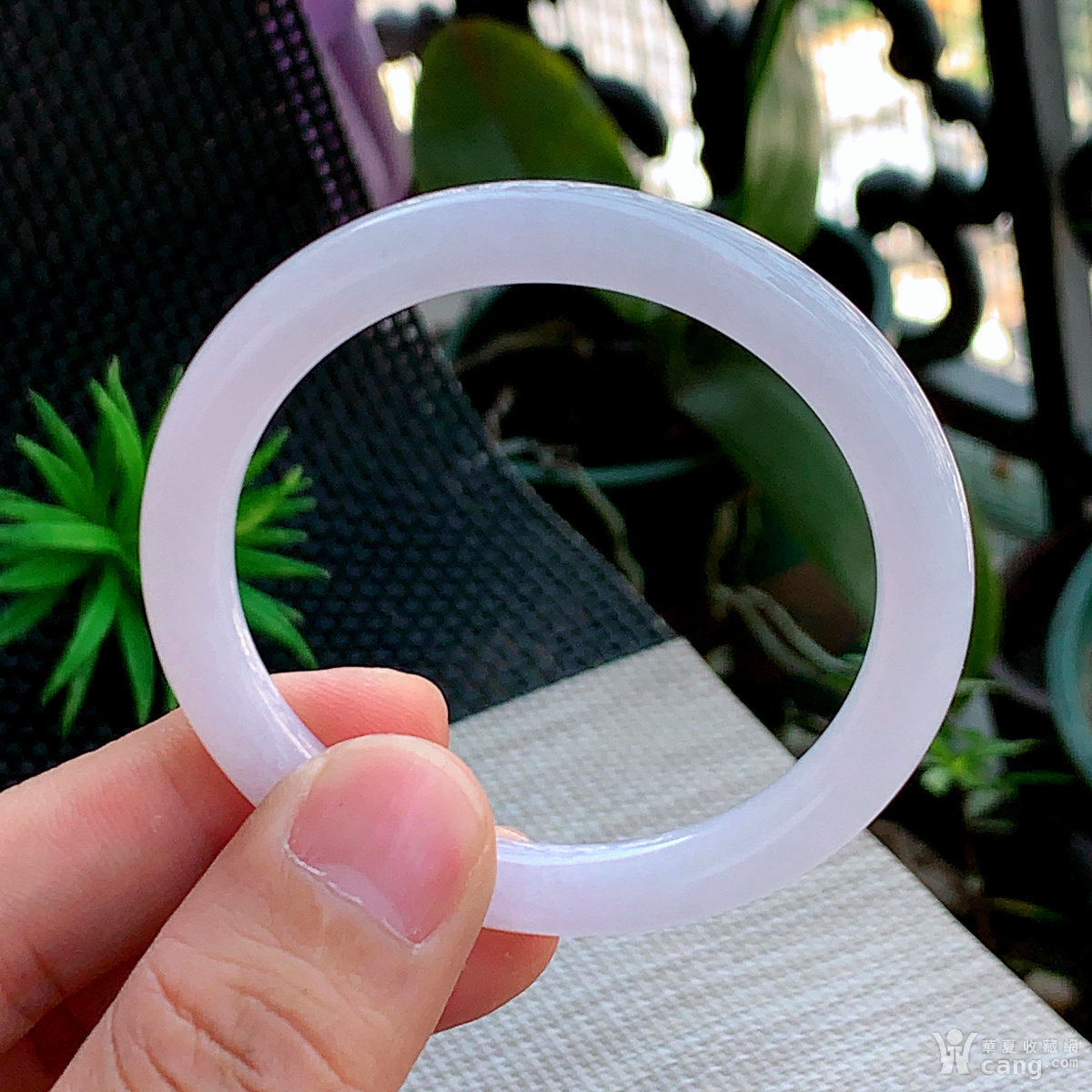 缅甸天然翡翠A货冰透水润浅紫圆条手镯55圈口