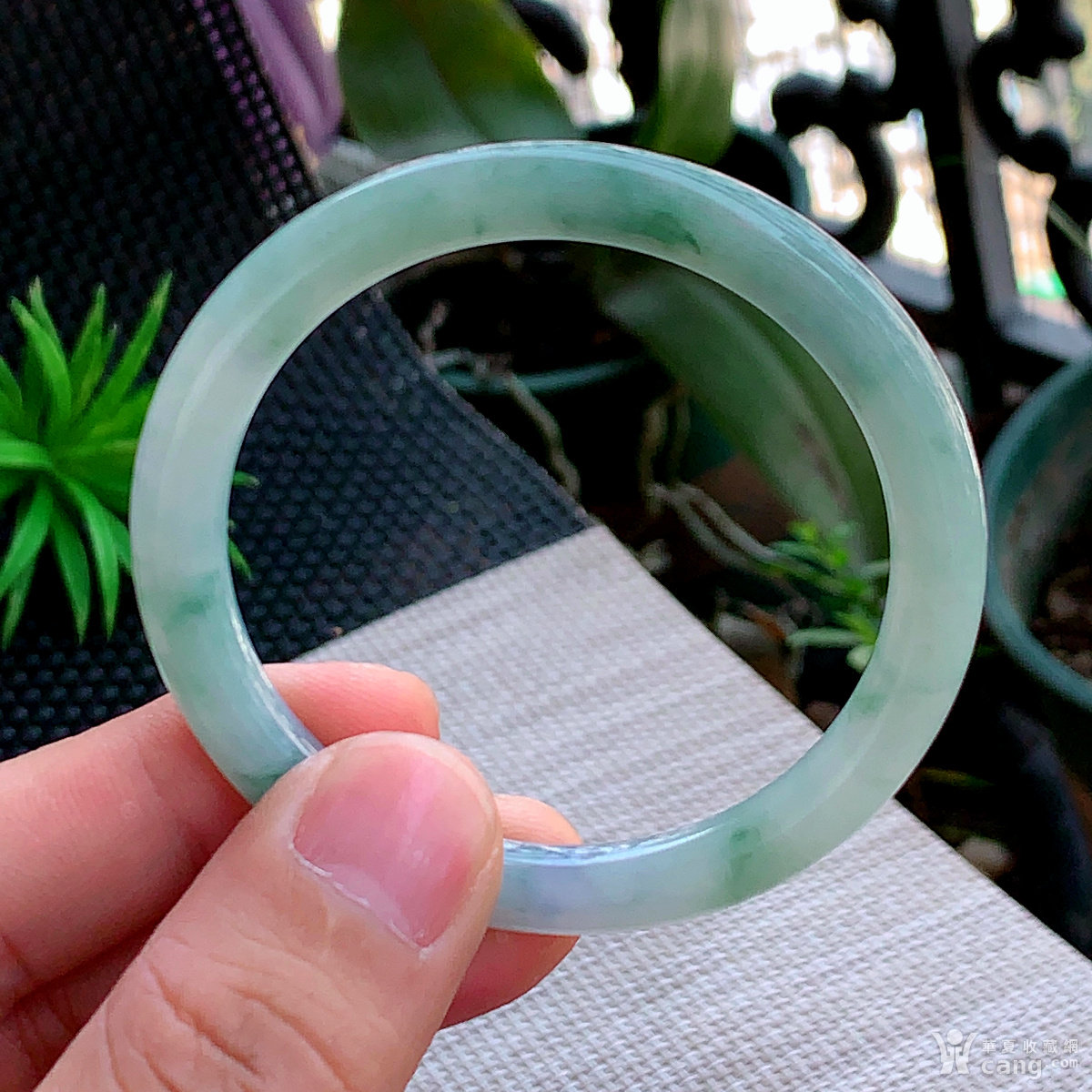缅甸天然翡翠A货冰透水润飘绿圆条手镯55.3圈口