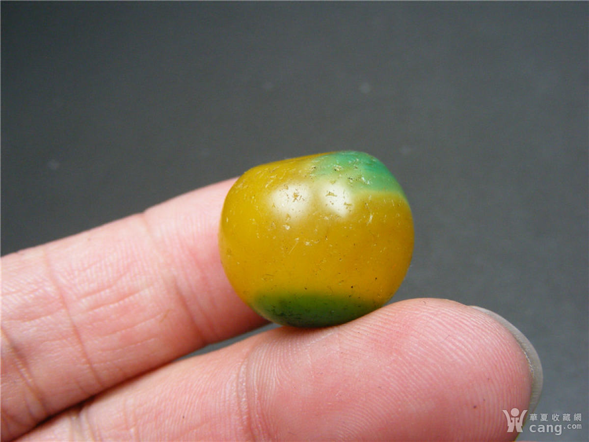 16 老西亚上百年的黄绿缠丝玛瑙大圆珠