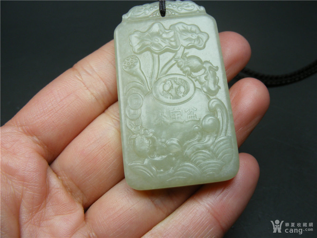 53 几十年的和田玉单面工浮雕聚宝盆大方牌