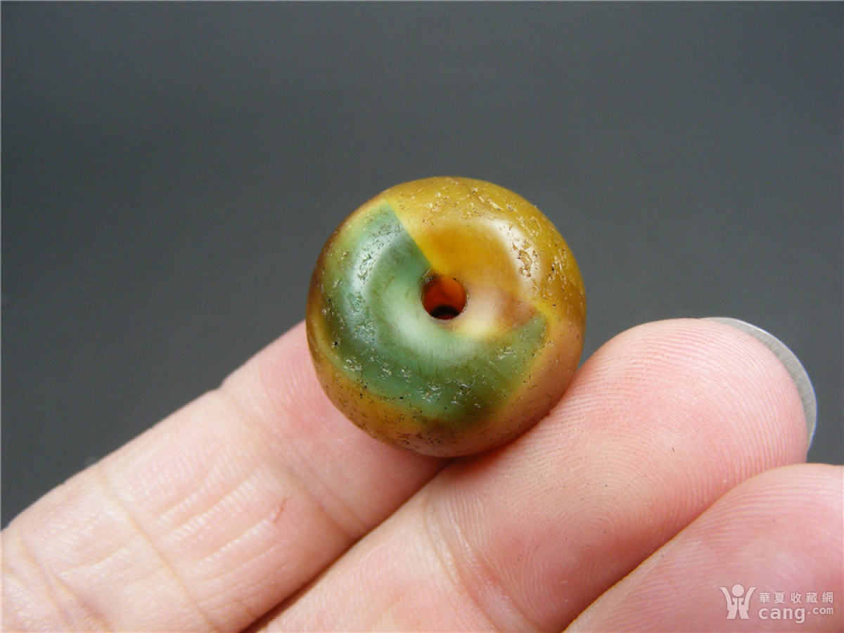 17 老西亚上百年的黄绿缠丝玛瑙大圆扁珠