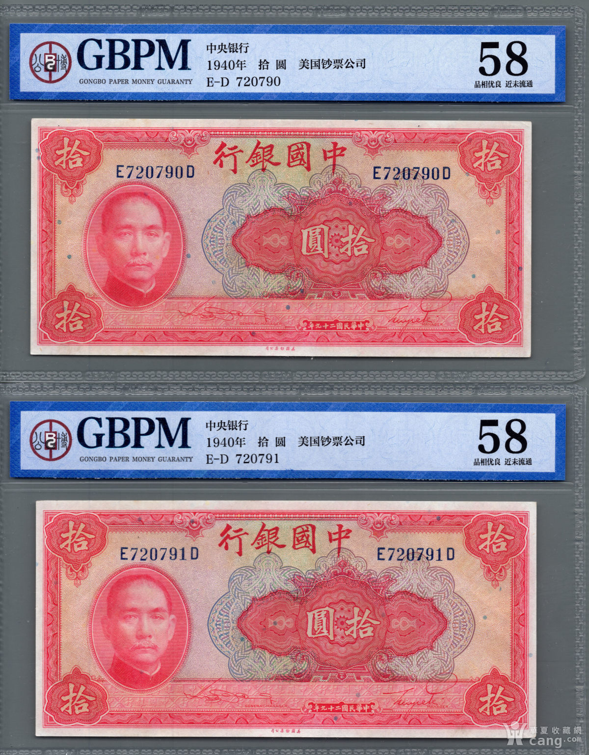 公博评级:中华民国二十九年中国银行拾圆纸币两连号