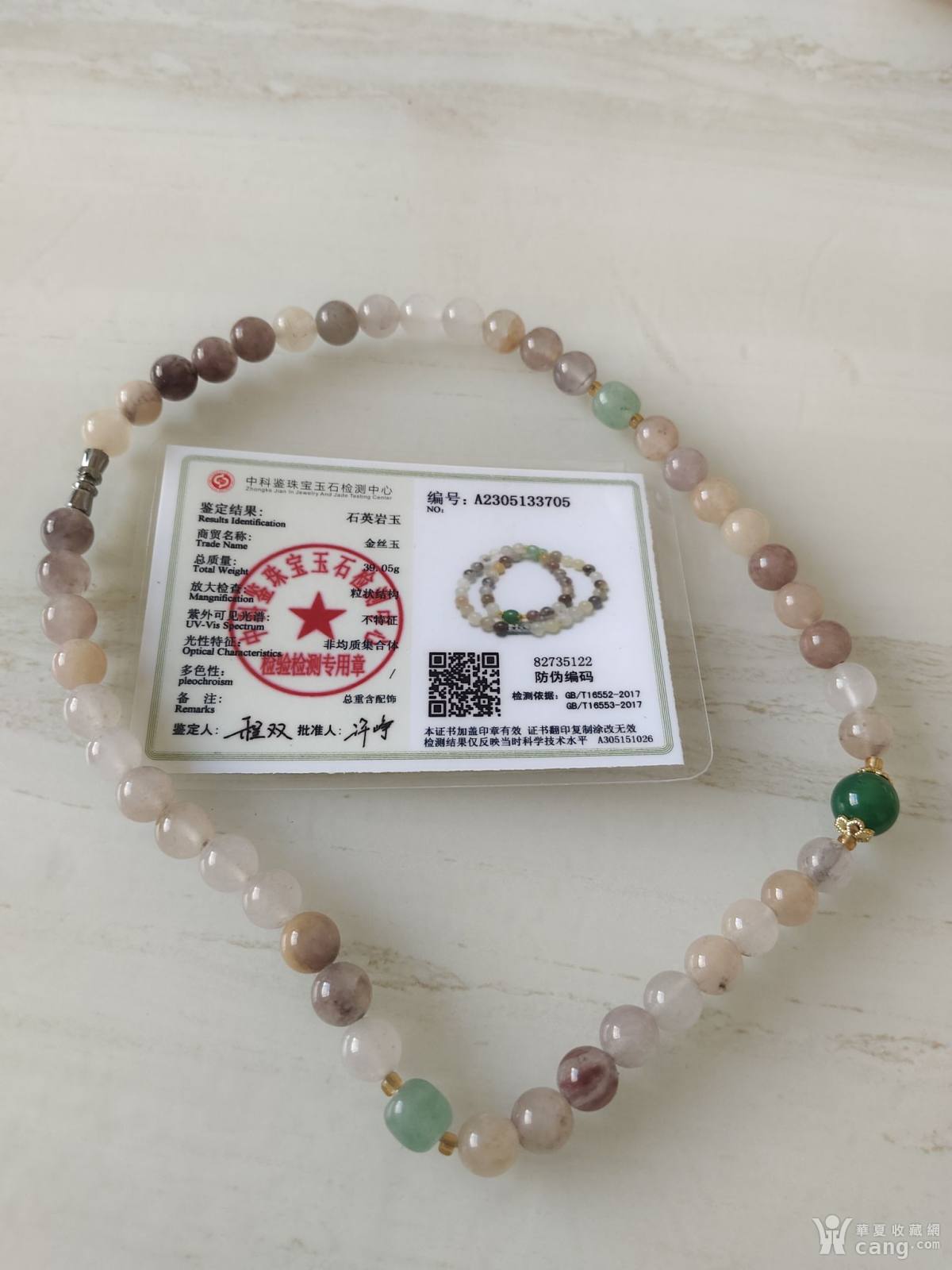 金丝玉项链,有证书