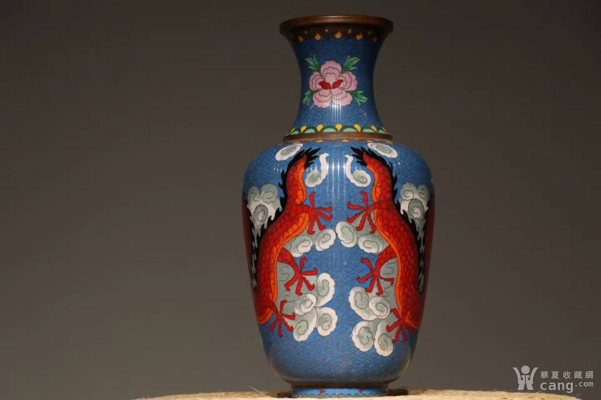 景泰蓝铜嵌珐琅赏瓶 景泰蓝铜嵌珐琅赏瓶,双龙戏珠纹饰,题材经